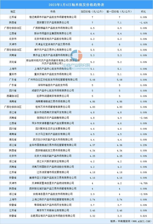 中商情報網(wǎng)訊:最新數(shù)據(jù)顯示:1月4日,全國粳米當(dāng)日均價為5.19元/公斤,秈米當(dāng)日均價為4.83元/公斤。其中,粳米價格最高的市場是位于江西省的新余市同盛實業(yè)集團有限責(zé)任公司,當(dāng)日價格為9.3元/公斤,環(huán)比持平。秈米價格最高的市場是江蘇宿遷南菜市農(nóng)副產(chǎn)品批發(fā)市場管理有限公司和陜西西安摩爾農(nóng)產(chǎn)品有限責(zé)任公司,當(dāng)日價格均為7元/公斤。